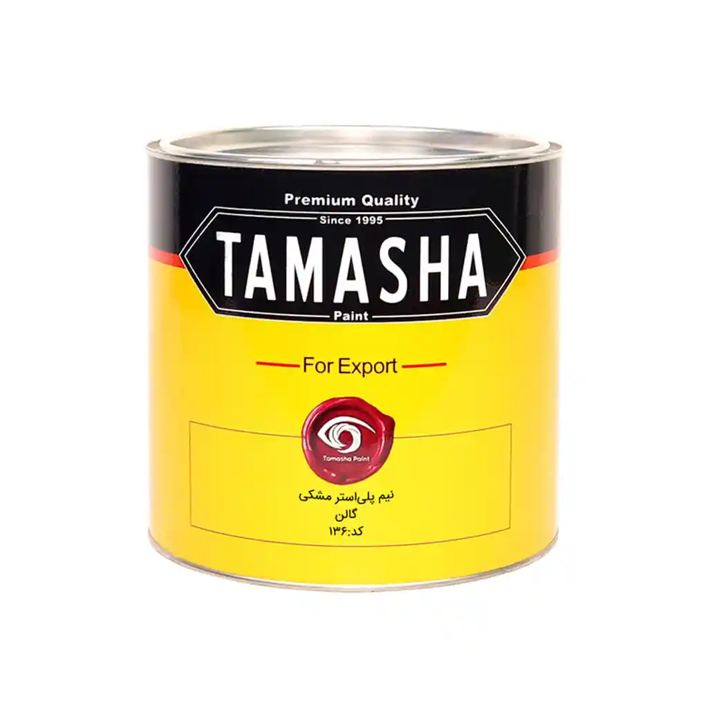 نیم پلی استر مشکی تماشا یک پوشش دو جزیی شفاف و براق است که برای حفاظت و زیباسازی سطوح چوبی و فلزی در فضاهای داخلی و خارجی کاربرد دارد. این پوشش بر پایه رزین الکید ساخته شده و نیاز به هاردنر یا خشک کن دارد تا خشک شود. نیم پلی استر بی رنگ تماشا ویژگی هایی مانند جلوه زیبا، لطافت و نرمی، سرعت خشک شدن بالا، یکنواختی و عدم موج دار بودن سطح، قابلیت تمیز شدن بدون لکه و سفیدک، چسبندگی عالی به سطوح، دوام و براقیت بالا، مقاومت در برابر سایش و ترشحات نفتی و روغنی، و سازگاری با شرایط جوی ایران را دارد. این محصول با فرمول ویژه تماشا تولید شده و توسط واحد تحقیق و توسعه، بر اساس نیازهای مختلف به روز رسانی شده است.